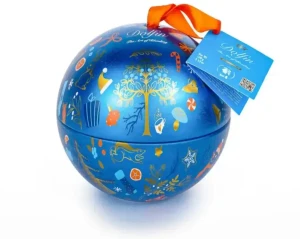 Bombka świąteczna Dolfin Lait 100 g to elegancki zestaw czekoladek z mlecznej czekolady, zapakowany w dekoracyjne opakowanie w formie bombki. Produkt łączy wysoką jakość belgijskiej czekolady z efektowną, świąteczną formą.