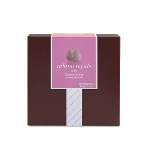 Bombonierka Rabitos Royale Ruby 142 g to hiszpańska specjalność oparta na całych, suszonych figach nadziewanych kremem i oblanych czekoladą ruby. To produkt delikatesowy – bardziej „gourmet” niż klasyczna bombonierka kremowa.