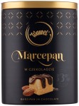 Niezwykle elegancka bombonierka-puszka, zawierająca prawdziwie wytworny przysmak - wysokiej jakości marcepan w polewie z czekolady deserowej.