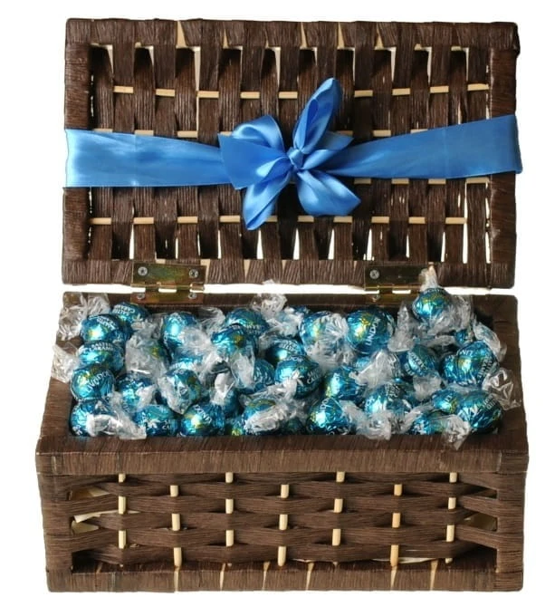 Wiklinowy kuferek w brązowym kolorze, po brzegi wypełniony pralinkami z delikatnej mlecznej czekolady, z wnętrzem wzbogaconym o kryształki soli, które otulone są gładkim nadzieniem karmelowym. Doskonała propozycja na prezent urodzinowy, ślubny, imieniny lub do wręczenia w geście podziękowania.