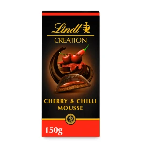 Czekolada Lindt Creation Mousse Cherry & Chili 150 g to wyrafinowana czekolada z nadzieniem musowym, łącząca owocową słodycz wiśni z delikatną pikantnością chili. To nietuzinkowa kompozycja z linii Creation, stworzona dla miłośników wyrazistych smaków.