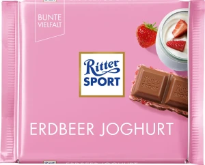 Niemiecka czekolada o słodkim, ale dobrze zrównoważonym smaku soczystych truskawek oraz aksamitnego, naturalnego jogurtu. Ritter Sport Erdbeer joghurt została wyprodukowana ze starannie wyselekcjonowanych owoców oraz wysokiej jakości nabiału. Mleczna czekolada wzbogacona małymi kawałkami owoców oferuje zróżnicowaną teksturę, a tym samym - jeszcze większą przyjemność z jedzenia. Słodycze doskonałe na każdą okoliczność oraz dla smakosza w każdym wieku.