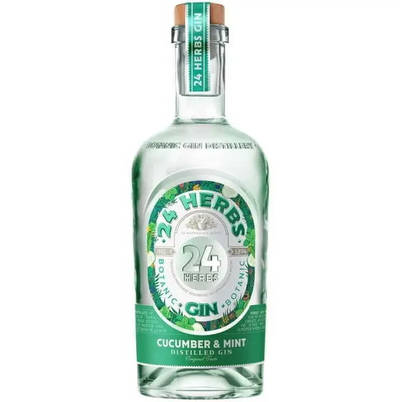 24 Herbs Cucumber & Mint Gin to polski gin botaniczny z linii 24 Herbs, butelkowany w objętości 0,7 l przy mocy 40 % ABV. Łączy orzeźwiającą świeżość ogórka i mięty ogrodowej z harmonijną kompozycją 24 naturalnych ziół.