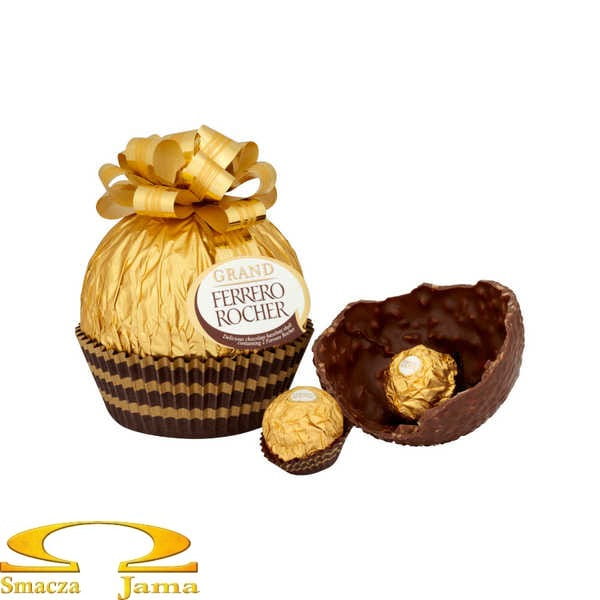 Przepyszna czekoladowa kuleczka Ferrero w rozmiarze XXL z chrupiącego wafelka obsypana aromatycznymi, kruszonymi orzechami laskowymi, skrywająca w swoim wnętrzu dwie pralinki. Prawdziwa rozkosz dla podniebienia.