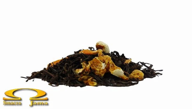 Umiarkowanie mocna czarna herbata cejlońska z dodatkiem dużych kawałków suszonych plastrów pomarańczy.