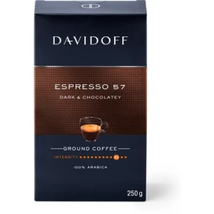 Kawa Davidoff 57 Espresso mielona 250 g to wysokiej jakości kawa inspirowana klasycznym włoskim espresso, przygotowana z wyselekcjonowanych ziaren Arabica. Nazwa „57” odnosi się do temperatury palenia, która pozwala wydobyć intensywny, a jednocześnie zbalansowany charakter kawy.
