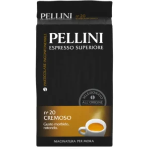 Kawa Pellini Espresso Superiore no. 20 Cremoso 250 g to mielona kawa inspirowana klasycznym włoskim stylem espresso, przygotowana z mieszanki ziaren Arabica i Robusty. Kompozycja oferuje pełny, kremowy smak, idealny dla miłośników tradycyjnego espresso o zrównoważonym charakterze.