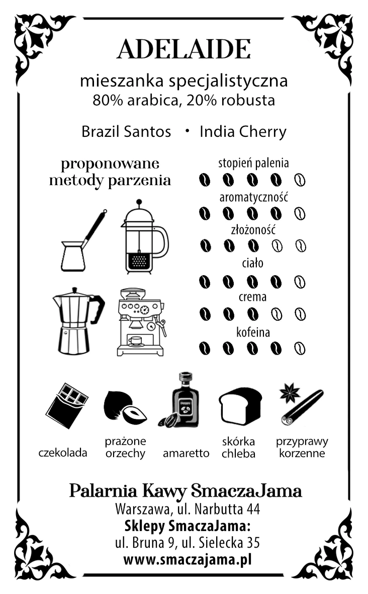 Adelaide to jedna z naszych autorskich mieszanek kaw, prosto z małej rzemieślniczej palarni w Warszawie