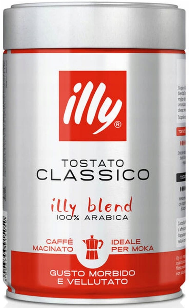 Kawa mielona Illy Classico Moka 250 g w puszce to wysokiej jakości kawa przygotowana w 100% z ziaren Arabica, stworzona specjalnie z myślą o parzeniu w kawiarce. Zamknięta w charakterystycznej puszce ciśnieniowej, pozwala zachować świeżość i pełnię aromatu na dłużej.