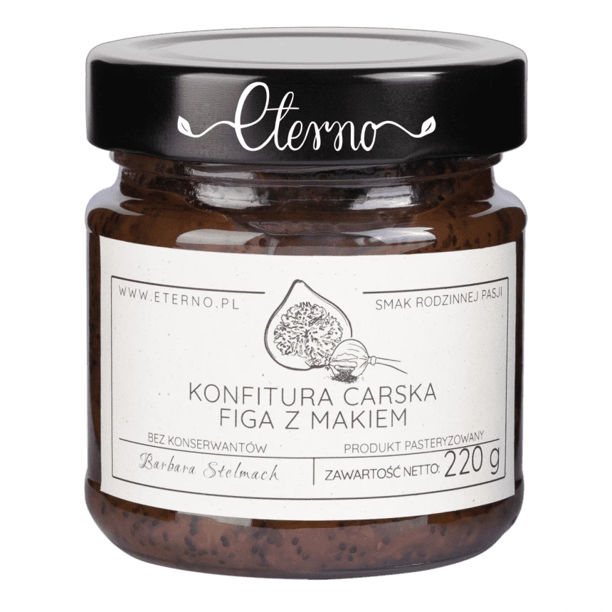Konfitura Carska Figa z Makiem polskiej marki Eterno w żartobliwy sposób zaprasza nas do odkrycia smaku znanego jeszcze z carskiego dworu. Jest idealnym dodatkiem do deserów oraz rodzinnych śniadań.