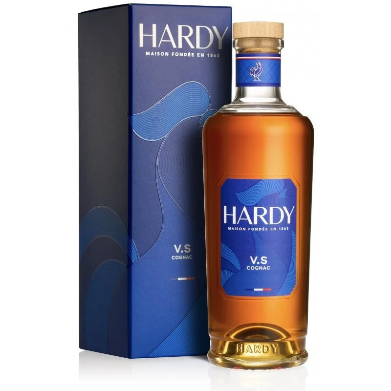 Koniak Hardy VS powstaje z destylatów dojrzewających minimum 2 lata w beczkach z francuskiego dębu. Dom Hardy działa od 1863 roku i znany jest z połączenia tradycyjnego rzemiosła z eleganckim stylem wizualnym.