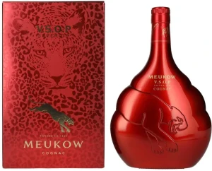 Limitowana edycja koniaku Meukow VSOP Red, idealnie nadaje się na prezent. Aromat owocowy połączony z karmelem, mieszanką orzechową i domieszką czekolady. W smaku zachwycą nas suszone morele, wanilia, wyczuwalne pieczone jabłko i brzoskwinia oraz nuta dębu, gałki muszkatołowej. Zadowoli nawet wymagające podniebienie.