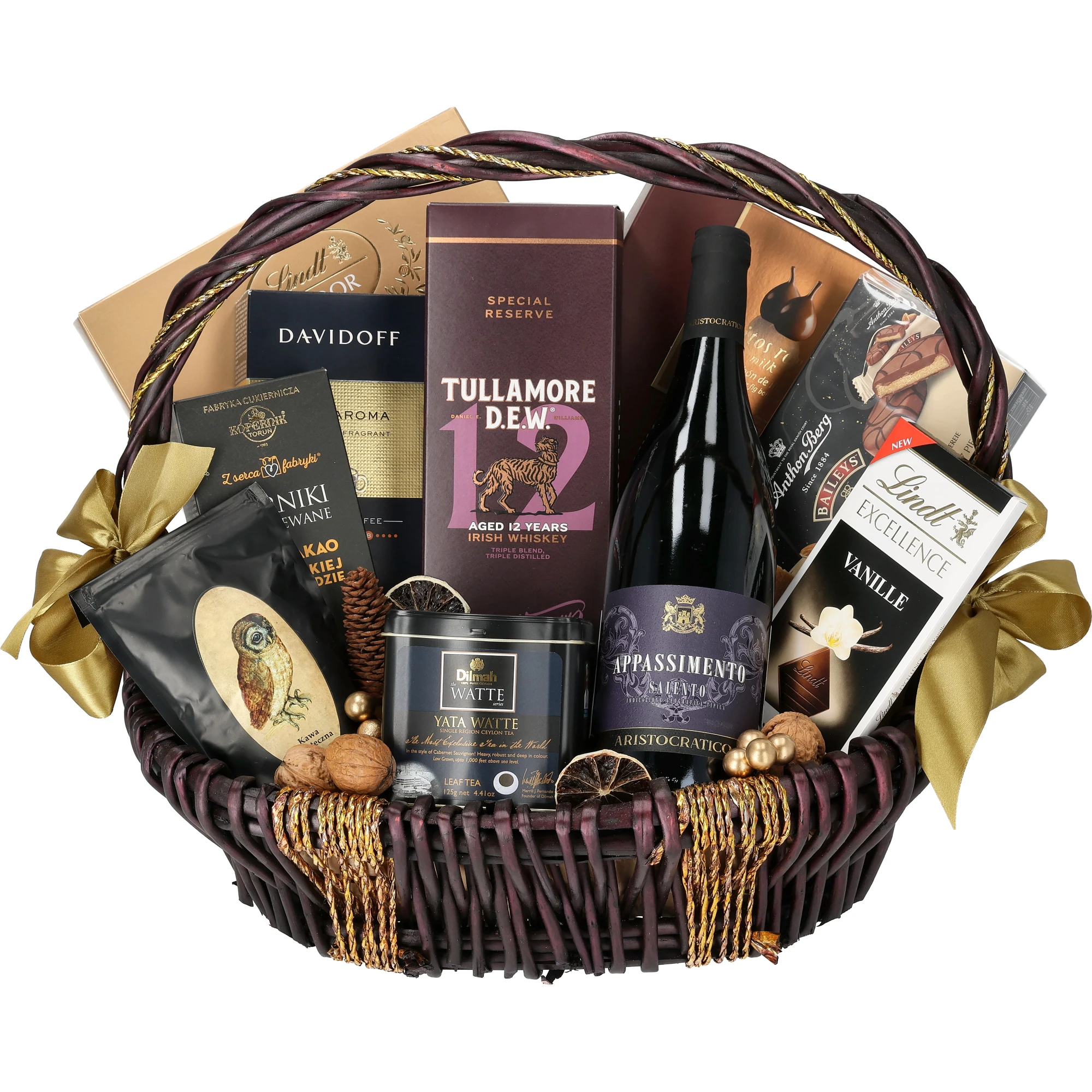 Tajemniczy i kuszący, mroczny i intrygujący, wyrazisty i wysmakowany kosz delikatesowy. Kompozycja m.in. zdecydowanego w charakterze wina, starzonej irlandzkiej whisky, kawy wypalanej rzemieślniczo, cejlońskiej herbaty i słodyczy o różnym rodowodzie, za to wspólnym mianowniku, jakim jest znakomita jakość. Jak nazwa wskazuje- obfity w mityczne wręcz smaki upominek do ubóstwiania.