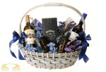 Doskonała propozycja kosza delikatesowego na uroczystość ślubną - dla Młodej Pary oraz, przez wzgląd na podwojone sugestie kaw i wina, także dla rodziców jako podziękowanie w tym wyjątkowym dniu. Kosz Nocny Król to zestawienie chłodnych tonacji - szarości, bieli i błękitów, skutkujące niezwykle eleganckim efektem.