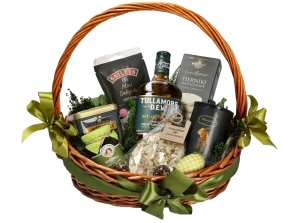 Oferowane przez nas kosze są zabezpieczane finalnie grubym celofanem oraz przyozdabiane wstążkami/rafią.
