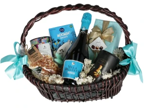 Oferowane przez nas kosze są zabezpieczane finalnie grubym celofanem oraz przyozdabiane wstążkami/rafią.