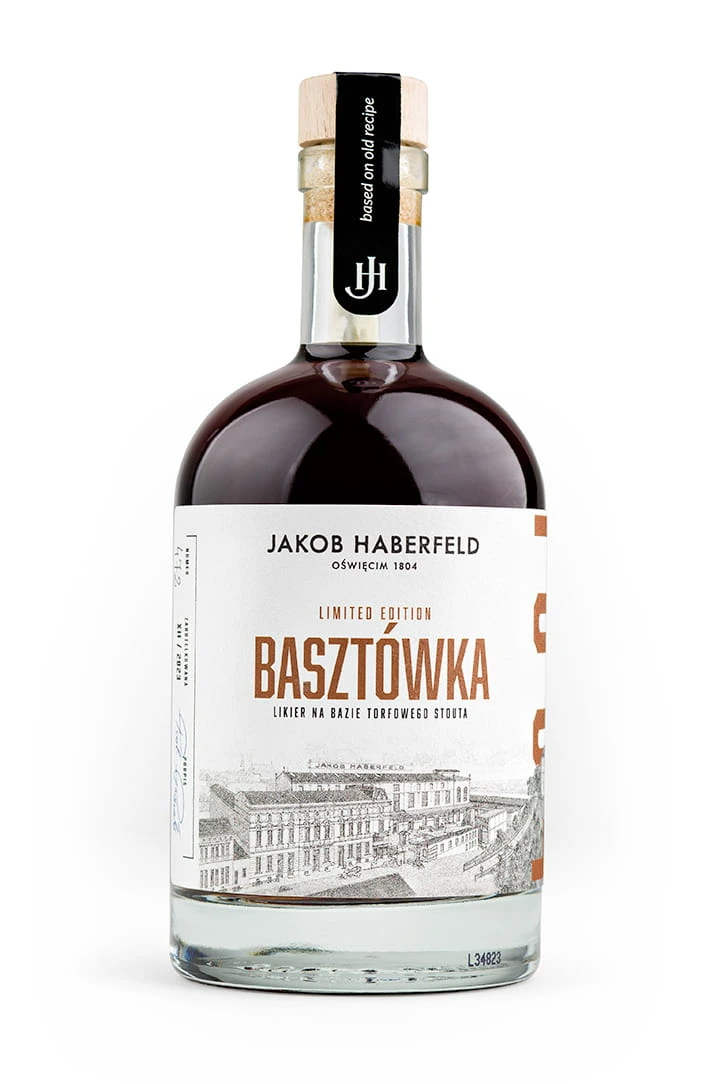 Jakob Haberfeld Basztówka Limited 0,5l (35% vol) to limitowany likier warzony na bazie torfowego stouta, który następnie leżakuje w beczkach po szkockiej torfowej whisky. Dodatek ziół i korzeni wzbogaca kompozycję smakową, tworząc mocny, złożony trunek.