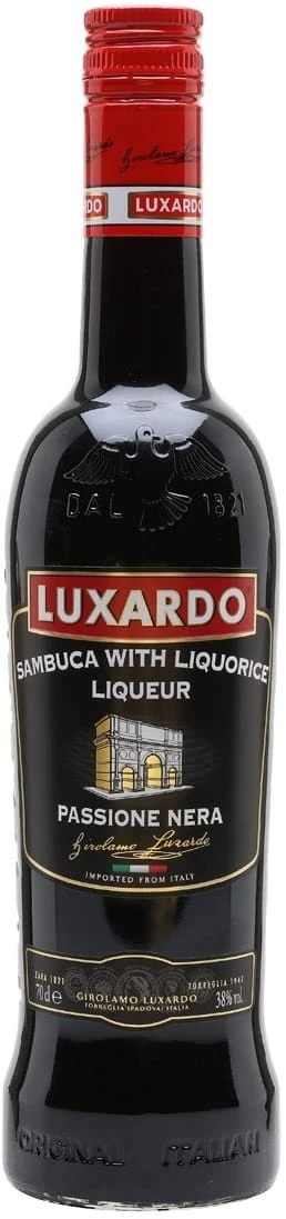Luxardo Passione Nera 0,7l (38% vol) to wyjątkowy włoski likier anyżowy o głębokim, czarnym kolorze i intensywnym aromacie, będący ciemną odmianą słynnej sambuki Luxardo. Jego nazwa oznacza „Czarna Pasja” i doskonale oddaje charakter trunku — wyrazisty, korzenny i pełen aromatycznej głębi. Powstaje na bazie starannie dobranych nasion anyżu gwiazdkowego, ziół i przypraw, destylowanych według tradycyjnej receptury rodzinnej.