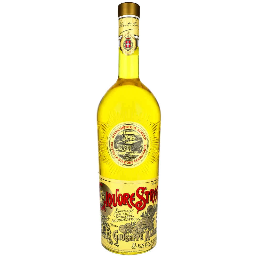 Włoski likier Strega 40% 4,5 l produkowany jest od 1860 roku. Jak mówi legenda, jego receptura została stworzona przez czarownice z Benevento.