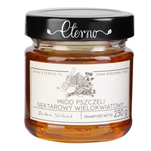 Miód wielokwiatowy o przyjemnej, rzadkiej konsystencji to obowiązkowy produkt w każdym domu oraz w każdej kuchni. O jego zdrowotnych właściwościach nie trzeba nikomu przypominać. Dodany do napojów, deserów, potraw, a nawet próbowany bezpośrednio łyżeczką - wzmocni odporność, rozgrzeje i złagodzi ból gardła. Zamknięty w słoiku z estetyczną etykietą może być miłym dodatkiem do prezentu.