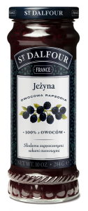"Owocowa Rapsodia" firmy St. Dalfour o smaku jeżyny wytwarzana jest według tradycyjnej receptury, która swoją historię rozpoczęła w dolinie Loary. Konfitury te wytwarzane są wyłącznie z owoców a słodkości dodaje im naturalny sok z winogron. Waga netto: 284g