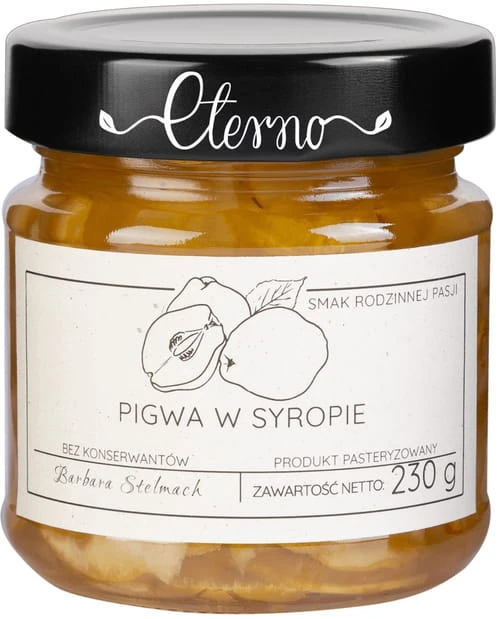 Pyszny, naturalny produkt, który łączy słodkość syropu z intensywnym smakiem dojrzałej pigwy. Owoce pigwy są starannie obrane, pokrojone i zamknięte w syropie, co pozwala zachować ich charakterystyczny aromat i smak przez długi czas. Idealne jako dodatek do deserów, naleśników, ciast lub jako przekąska. Doskonale komponuje się również z herbatą lub jako element dekoracyjny w napojach.
