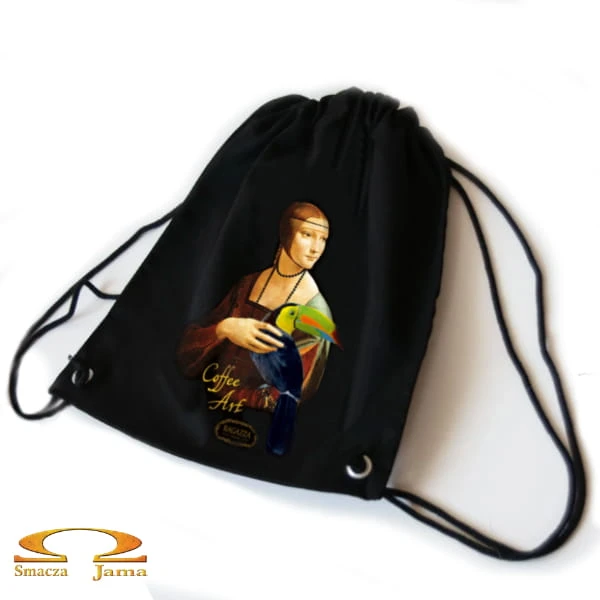 Ekologiczny workoplecak, łączy funkcjonalność, wygodę oraz wysoką jakość wykonania. Uszyty w Polsce z bawełny najwyższej jakości 100% naturalnej. Produkt jest nie tylko ekologiczny, ale również niezwykle wytrzymały, materiał ma gramaturę 280g, dzięki czemu doskonale sprawdza się w codziennym użytkowaniu. Plecaczek na bawełnianych szelkach spokojnie pomieści wiele produktów, nosząc je na plecach masz wolne ręce, np. podczas jazdy rowerem. Autorski nadruk "Coffee Art" z wizerunkiem Damy Leonarda da Vinci z tukanem tęczodziobym - symbolizującym brazylijskie pochodzenie jednej z kaw Ragazza, swą oryginalnością zwróci uwagę nie tylko wśród kawoszy.