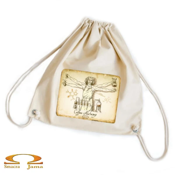 Ekologiczny workoplecak, łączy funkcjonalność, wygodę oraz wysoką jakość wykonania. Uszyty w Polsce z bawełny najwyższej jakości 100% naturalnej. Produkt jest nie tylko ekologiczny, ale również niezwykle wytrzymały, materiał ma gramaturę 280g, dzięki czemu doskonale sprawdza się w codziennym użytkowaniu. Plecaczek na bawełnianych szelkach spokojnie pomieści wiele produktów, nosząc je na plecach masz wolne ręce, np. podczas jazdy rowerem. Autorski nadruk "Coffee Alchemy" z wizerunkiem Człowieka Witruwiańskiego Leonarda da Vinci z akcesoriami do parzenia kawy na pergaminie, swą oryginalnością zwróci uwagę nie tylko wśród kawoszy.