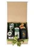 Jeżyny, porzeczki, zapach mchu i odrobina zieleni - tak w kilku słowach można opisać zestaw prezentowy Leśne Skarby. Wystarczy uchylić wieczko, aby przenieść się na łono natury, a następnie oddać chwili przyjemności i relaksu. Kompozycję dopełnia aksamitna czekolada w kształcie złotego zająca nadając jej świątecznego klimatu.