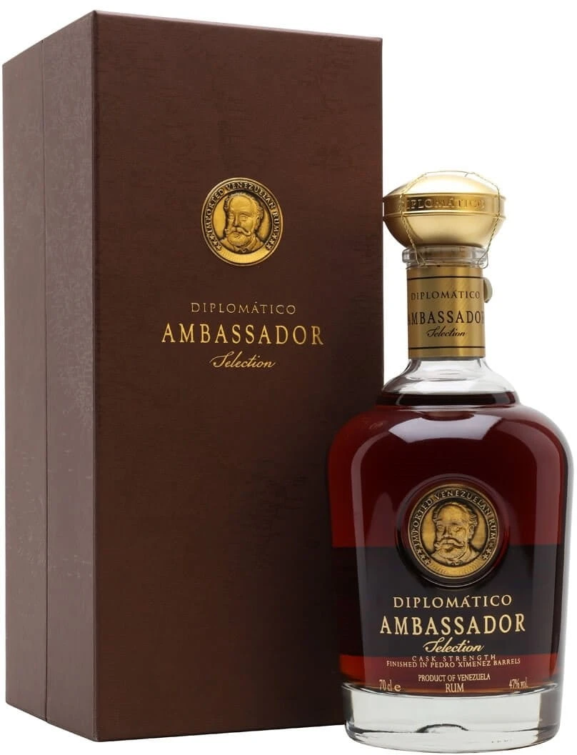 Rum Diplomático Ambassador Selection 47% 0,7 l to jedna z najbardziej prestiżowych i dopracowanych edycji w portfolio wenezuelskiej marki :contentReference[oaicite:0]{index=0}. Stworzony jako reprezentacyjny trunek destylarni, łączy wieloletnie dojrzewanie, selekcję najlepszych destylatów oraz dodatkowy finisz, który nadaje mu wyjątkowej elegancji i głębi.