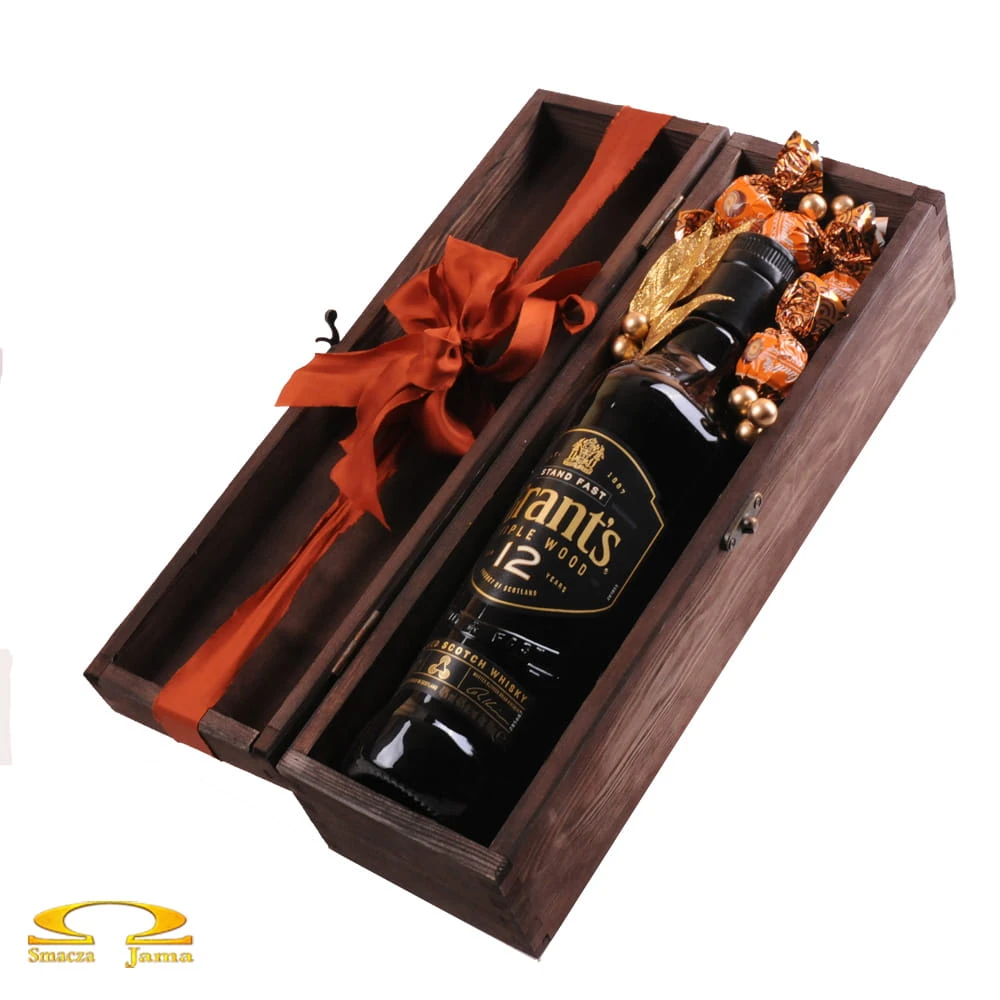 Znakomita dwunastoletnia whisky typu blended, jako jedyna w swojej klasie finiszowana w beczkach po burbonie, w eleganckiej skrzyneczce drewnianej z zamykanym wiekiem. Dla przełamania smaku i podkreślenia kremowo- orzechowych nut trunku, w zestawie znalazły się także czekoladki Lindor. Upominek idealny na każdą świąteczną okazję.