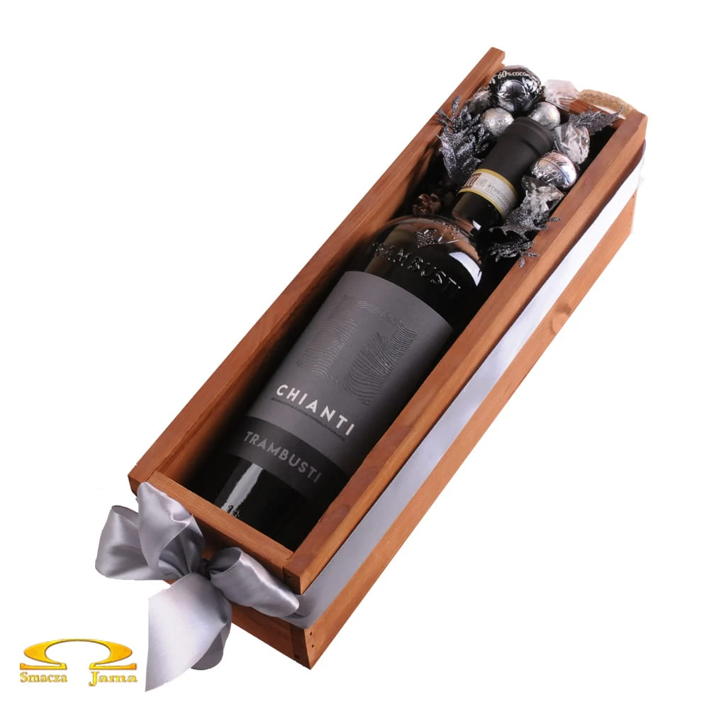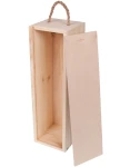 Pusta drewniana skrzyneczka z zasuwanym wiekiem. Wino na zdjęciu pełni rolę poglądową.