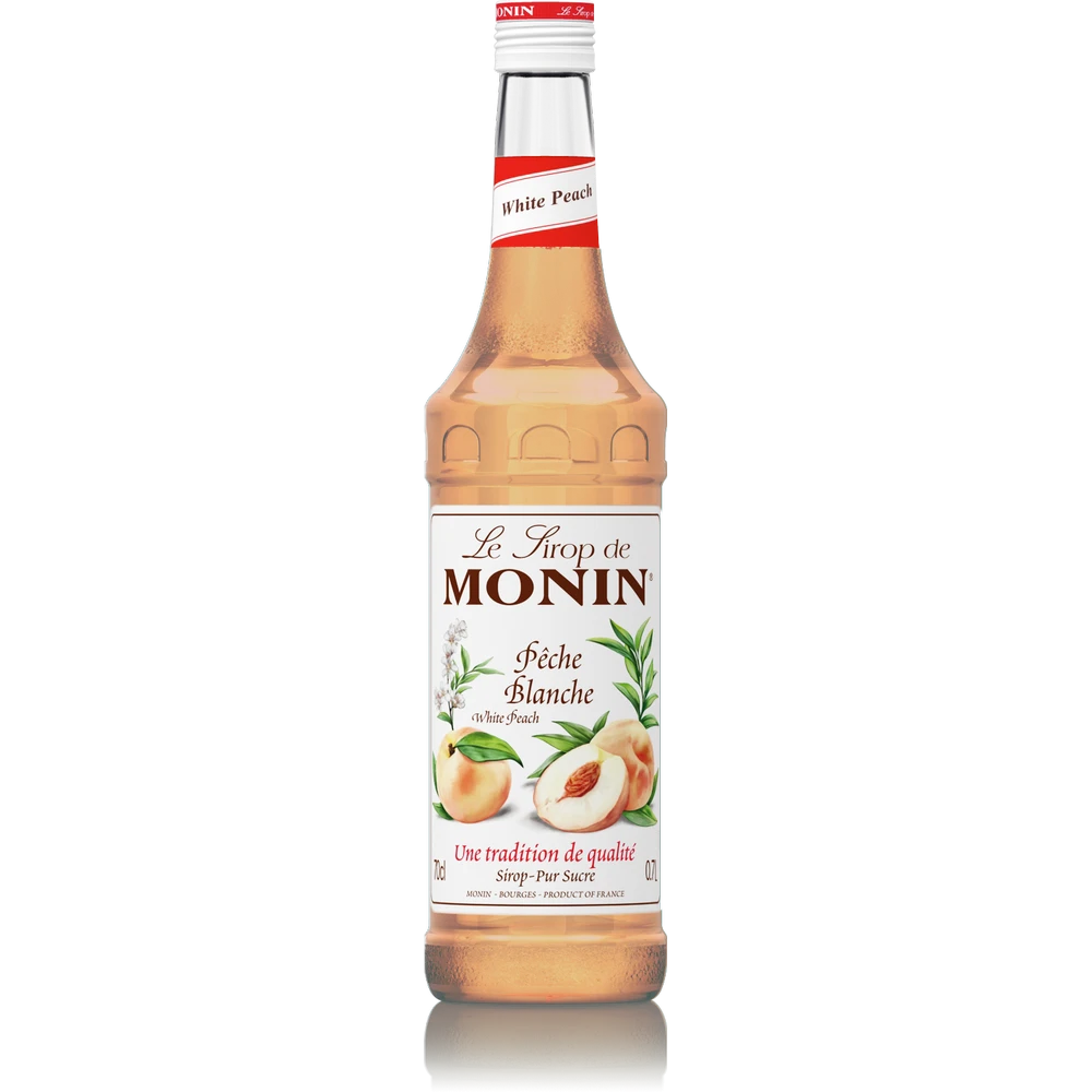 Syrop Monin o smaku białej brzoskwini to uniwersalny dodatek do koktajli, lemoniady, smoothie, cz herbaty.