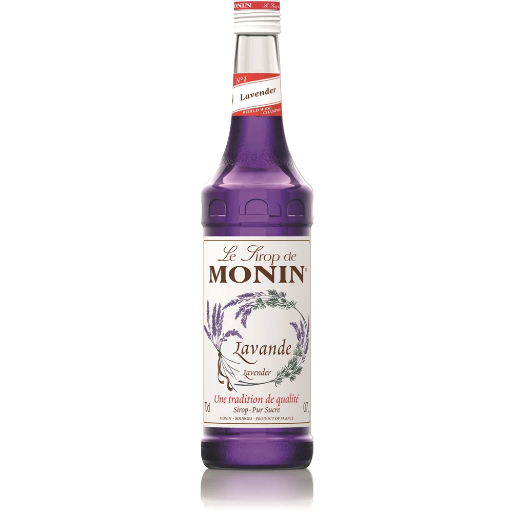 Lawenda firmy MONIN cechuje się pięknym kolorem i charakterystycznym aromatem przypominającym barwy i zapachy Prowansji. Aromat ten stanowi część bukietów aromatów kwiatowych obejmujących także jaśmin, różę i fiołka. Wszystkie aromaty kwiatowe firmy MONIN są idealne do wzbogacania zapachem kwiatów różnorodnych napojów i potraw.