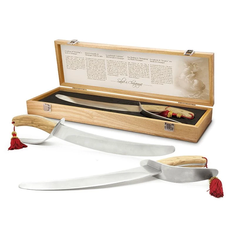Profesjonalna szabla do sabrażu szampana, czyli oryginalnego sposobu jej otwarcia poprzez ścięcie szyjki butelki, wywodzącego się z czasów napoleońskich. Rękojeść szabli wykonano z ponad tysiącletniego drzewa oliwkowego z Włoch, ostrze zaś ze stali nierdzewnej- w całości jest to produkcja ręczna, z niezwykłą dbałością o każdy detal.