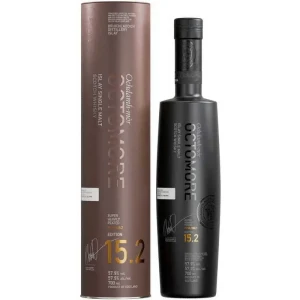 Wersja 15.2 dojrzewa i/lub finiszowana jest w beczkach po winie, które wprowadzają nuty owocowe i lekką taniczność, kontrastując z ekstremalnym torfem. Wysoka moc 57,9% ABV podkreśla intensywność i pozwala dostosować profil poprzez dodanie wody.