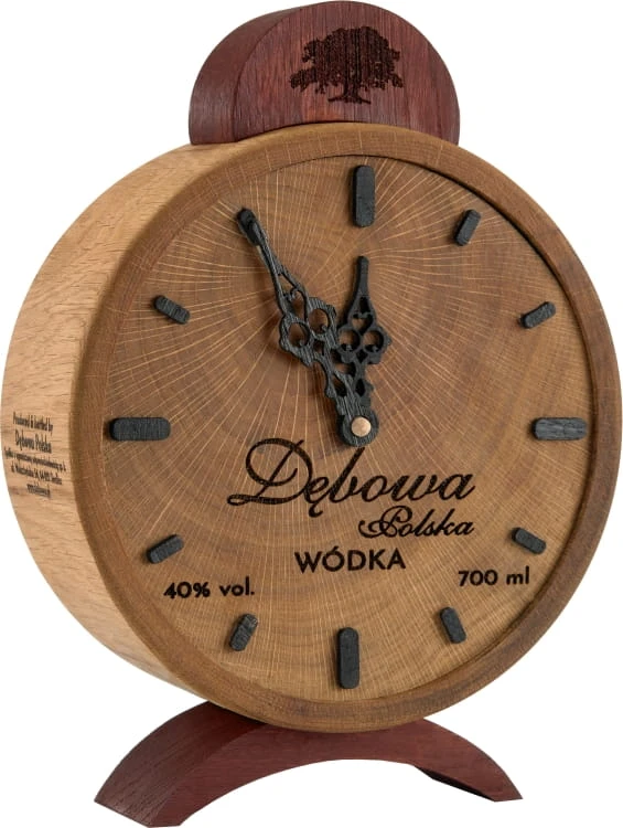 Wódka Dębowa Budzik 40% 0,7 l to okolicznościowa wersja klasycznej polskiej wódki czystej, umieszczona w dekoracyjnej obudowie stylizowanej na budzik. Produkt łączy tradycyjny, neutralny profil smakowy z humorystyczną i efektowną formą podania, dzięki czemu sprawdzi się jako prezent lub element przyciągający uwagę podczas uroczystości.