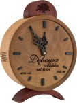 - Obudowa w kształcie budzika pełni funkcję dekoracyjną – wódka nie dojrzewa w drewnie.