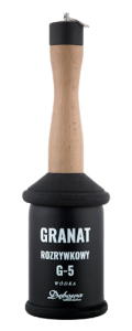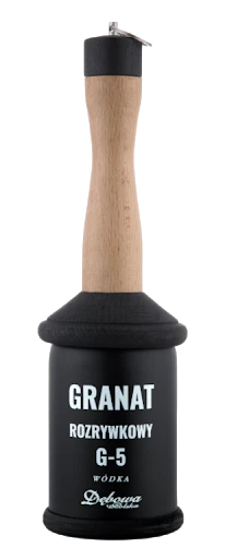 Wódka Dębowa Granat Rozrywkowy G-5 40% 0,5 l to okolicznościowa wersja klasycznej wódki czystej, zamknięta w dekoracyjnym opakowaniu stylizowanym na granat. Charakterystyczna, militarno-imprezowa forma podania sprawia, że produkt ma wyraźnie humorystyczny i prezentowy charakter. To połączenie tradycyjnej receptury z efektownym designem.