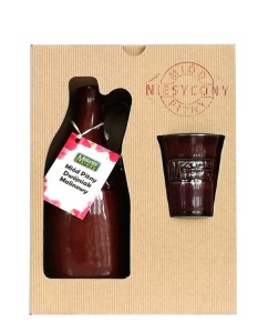 Wysokiej jakości miód Pitny Dwojniak Niesycony z sokiem malinowym został zamknięty w eleganckiej kamionce, którą dołączoną do zestawu z ceramicznym kubkiem.